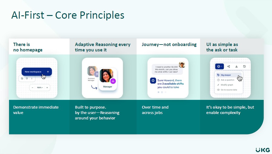 Rather than treating the frontline as an afterthought, UKG’s platform strategy begins with this worker and extends outward. From how people are scheduled and paid to how they’re engaged, retained, and supported. This customer-first mindset shows up across the entire journey—from sales to ongoing support. CEO Jennifer Morgan opened the day with something that stuck with me: “Frontline employees are the face of the brand to customers… UKG thinks differently about frontline workers.” And you know what? That’s not an empty promise. While everyone else is obsessing over knowledge worker productivity (and trying to replace them with AI), UKG is building a platform that truly gets what it means to manage a retail workforce, healthcare staff, or manufacturing teams. Yes, they are incorporating AI, but with a focus to make everyone’s life easier, including employees. Jennifer Morgan and new Chief Product Officer Suresh Vittal emphasized that UKG is “all-in” on delivering measurable outcomes to this customer base.